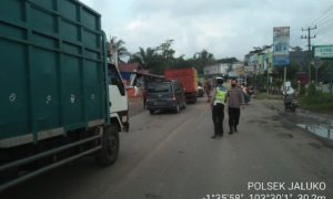 MUARO JAMBI – persbhayangkara.id JAMBI Kapolsek Jaluko Bersama Jajaran mengatur arus lalulintas Jalan ,Antisipasi gangguan Lalu lintas Akibat perbaikan pengerjaan Box Culver...