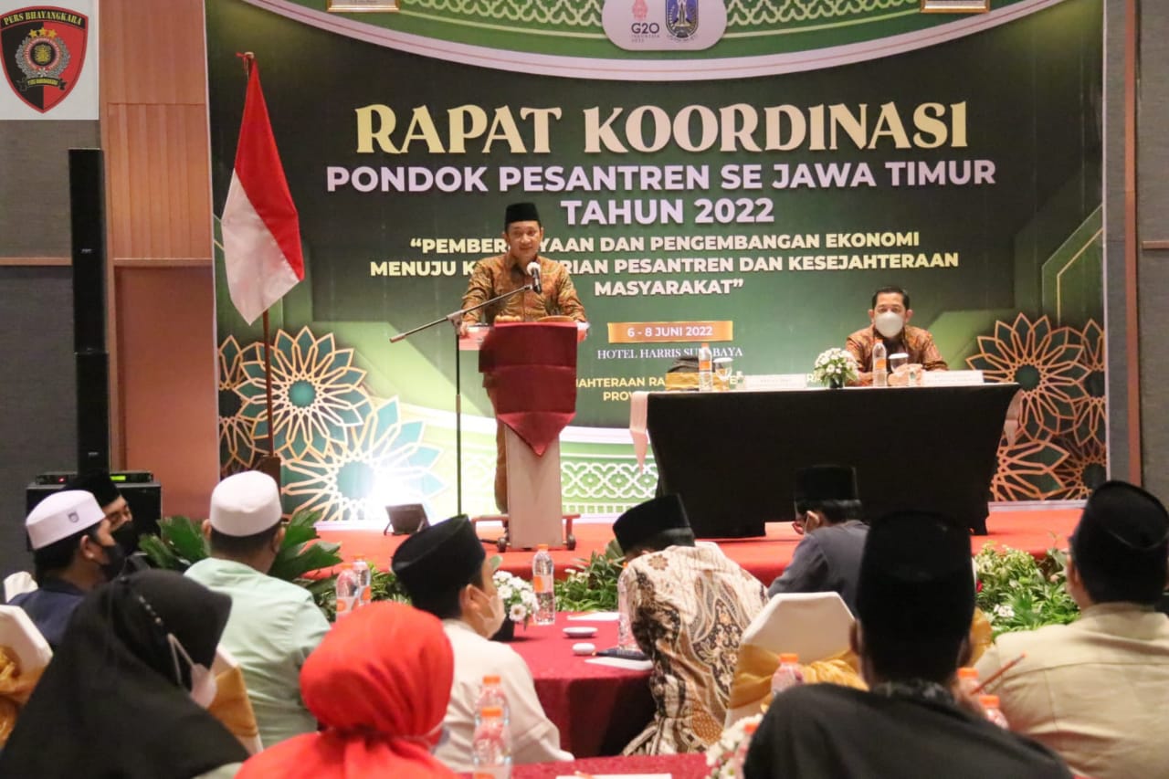 SURABAYA – persbhayangkara.id JAWA TIMUR Kepala Biro Kesra Setdaprov Jatim, Gatot Soebroto saat membuka Rapat Koordinasi Pondok Pesantren se – Jawa Timur...