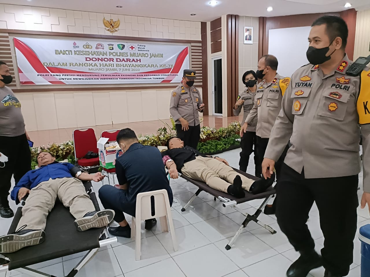 MUARO JAMBI – persbhayangkara.id JAMBI Jelang Hari Bhayangkara 1 Juli 2023 Ke 76 polres Muaro Jambi menggelar Kegiatan Bhakti sosial Donor Darah....